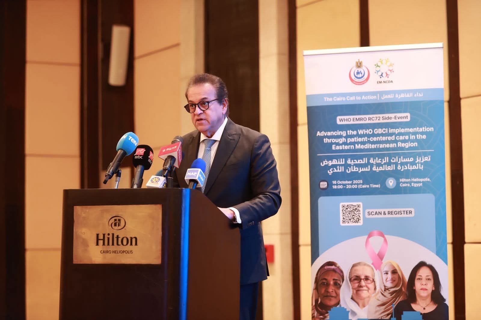 جاء ذلك خلال كلمة الدكتور عبدالغفار في مؤتمر «النهوض بتنفيذ مبادرة منظمة الصحة العالمية لسرطان الثدي من خلال الرعاية المتمحورة حول المريض في إقليم شرق المتوسط» الذي نظمته المنظمة بالشراكة مع تحالف شرق المتوسط للأمراض غير المعدية، على هامش الدورة 72 للجنة الإقليمية لمنظمة الصحة العالمية (15-17 أكتوبر 2025) بالقاهرة، بحضور نواب وزراء الصحة من عمان وروسيا، وممثلي المنظمات الدولية.