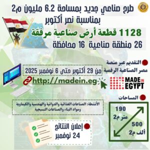 2. التقديم عبر منصة مصر الصناعية الرقمية madein.eg حتى 6 نوفمبر 2025 وإعلان النتائج يوم 24 نوفمبر
