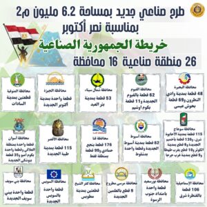 1. قطع الأراضي بإجمالي مساحة 6.2 مليون متر مربع موزعة على 26 منطقة صناعية في 16 محافظة