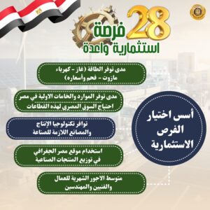 إنفوجراف .. تعرف بالتفصيل على الـ28 فرصة استثمارية واعدة  من وزارة الصناعة بهدف تعميق التصنيع المحلي وتلبية احتياجات السوق