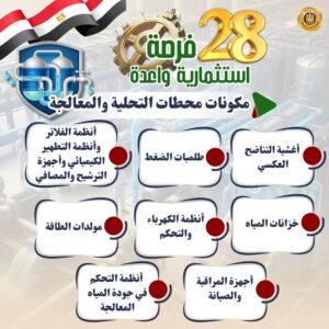 5- مكونات محطات التحلية والمعالجة (أغشية التناضح العكسي – طلمبات الضغط- أنظمة الفلاتر- خزانات المياه- أنظمة الكهرباء والتحكم- أنظمة التطهير الكيميائي- مولدات الطاقة- أجهزة المراقبة والصيانة- أنظمة التحكم في جودة المياه المعالجة- أجهزة الترشيح- المصافي).