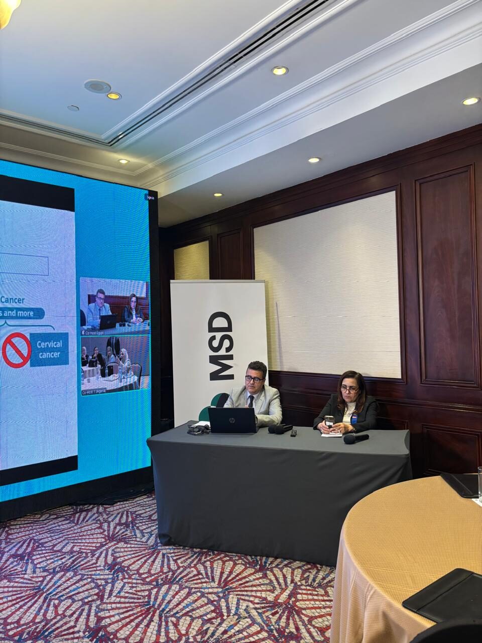 وشهدت ورشة عمل بعنوان “فهم فيروس الورم الحليمي البشري والأمراض والسرطانات المرتبطة به والعبء الاقتصادي الناتج عنه” ويشارك فيها د. أمل السيسي أستاذة طب الأطفال ومنسقة برنامج صحة الأم والطفل، والمديرة الفخرية لبرنامج “متحدون للقضاء على سرطان عنق الرحم” في مصر. والبروفيسور مارتن ج. بوستما أستاذ اقتصاديات الدواء بجامعة جرونينجن، بهولندا.