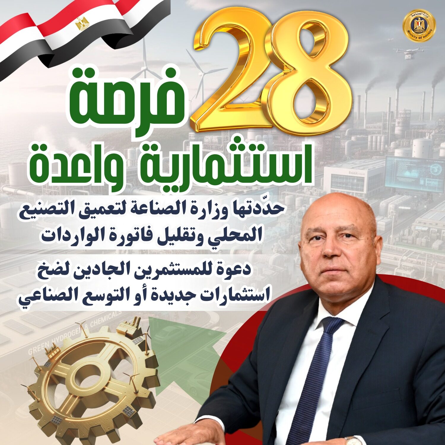 تعرف بالتفصيل على الـ28 فرصة استثمارية واعدة  من وزارة الصناعة بهدف تعميق التصنيع المحلي وتلبية احتياجات السوق