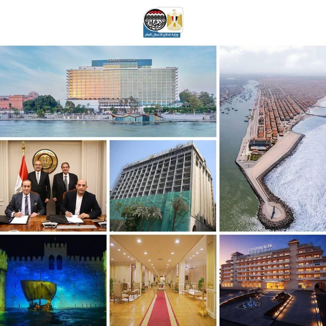 وفي قطاع السياحة والفنادق، واصلت الوزارة تنفيذ استراتيجية تعظيم العائد من الأصول السياحية والفندقية، من خلال تطوير الفنادق ورفع كفاءتها، وتنفيذ مشروعات جديدة شملت إنهاء وتشغيل فنادق في رأس البر (هوتاك أراكان) و(نفرتاري) بأبو سمبل، وإطلاق مشروع إحياء فندق الكونتيننتال التاريخي بوسط القاهرة والتعاقد مع شركة الفنادق الهندية المحدودة لإدارته وتشغيله بعلامة “تاج” العالمية ليعد أول دخول لها للسوق المصرية، وتسريع وتيرة العمل بفندق شبرد، والبدء في تنفيذ توسعات فندقية في رأس البر (ملحق فندق شتيجنبرجر اللسان) وإطلاق مشروع إحلال وتجديد منتجع كارنيليا بيتش– مرسى علم، وتوقيع عقد لتطوير وتشغيل فندق “جيت بيتش” بالعين السخنة بنظام حق الانتفاع، ومشروع امتداد فندق “أورا” بالساحل الشمالي، بما يسهم في زيادة الطاقة الفندقية، وتعزيز الحركة السياحية، وتوفير فرص عمل مباشرة وغير مباشرة، فضلا عن تحديث أسطول النقل السياحي لشركة مصر للسياحة، والبدء في مشروع إنشاء مصنع الخشب البلاستيكي بالعاشر من رمضان، ومشروع تطوير منطقة المعمورة الشاطئ، وإجراء تسويات بشأن مبنى قصر القطن بالإسكندرية بغرض استغلاله في نشاط فندقي تجاري إداري، بالإضافة إلى مشروعات تهدف إلى استغلال بعض الأصول التجارية في النشاط الفندقي، وكذلك توسعات فندقية بالأقاليم منها في المحلة وطنطا.