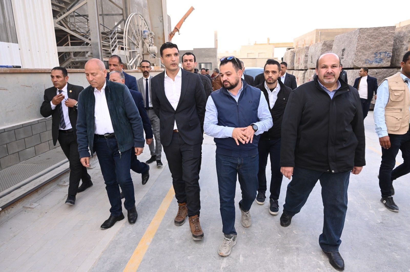 وبدأ الوزير جولته بتفقد مصنع الشركة المتحدة للرخام والجرانيت المقام على مساحة 4300 متر مربع وحجم استثمارات تبلغ 70 مليون جنيه وتبلغ الطاقة الإنتاجية للمصنع 390 ألف متر مربع سنويًا، ونسبة المكون المحلي 50%، وتصدر الشركة 40% من إنتاجها لأسواق أوروبا وآسيا وإفريقيا، وتوفر الشركة 40 فرصة عمل (دائمة ومؤقتة)، وخلال الزيارة تفقد الوزير خطوط الإنتاج والمعالجة.