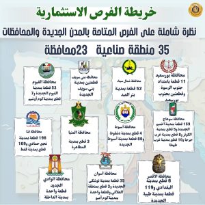 – قبل يومين من غلق باب التقديم، تعرف على الطرح الثالث عشر للأراضي الصناعية المرفقة من خلال منصة مصر الصناعية الرقمية www.madein.eg، والذي يشمل 1272 قطعة أرض صناعية كاملة المرافق بإجمالي مساحة تقدر بنحو 9 مليون و780 ألف متر مربع موزعة على 35 منطقة صناعية في 23 محافظة.