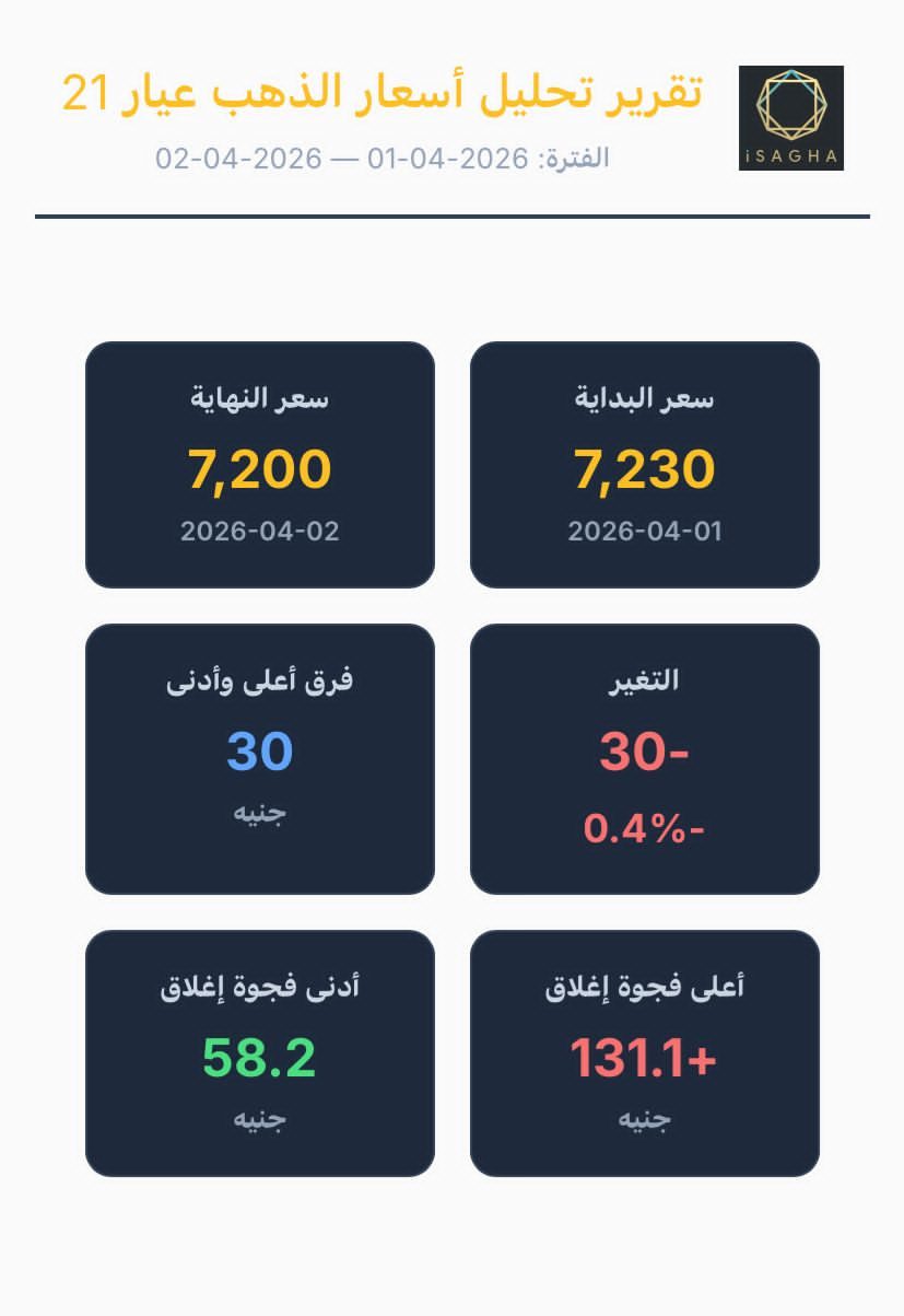 عيار 21 سجل 7,200 جنيهًا.